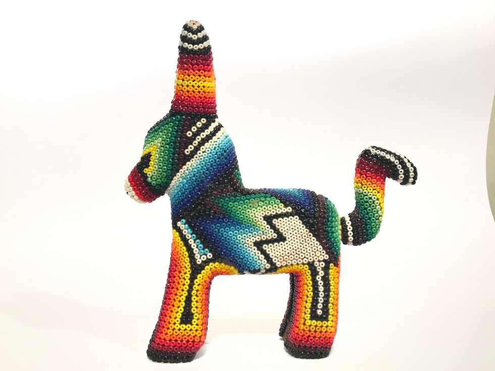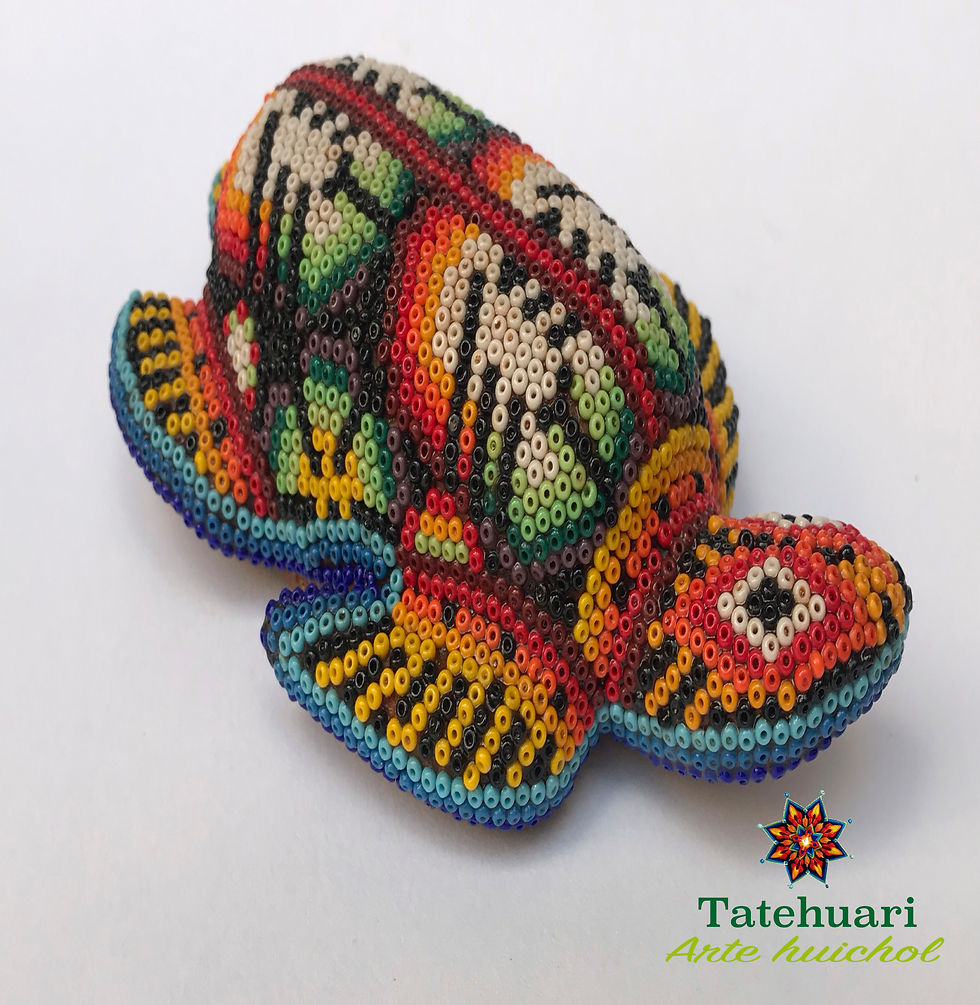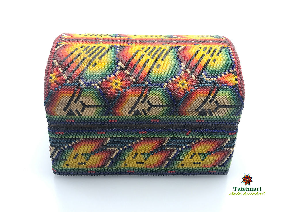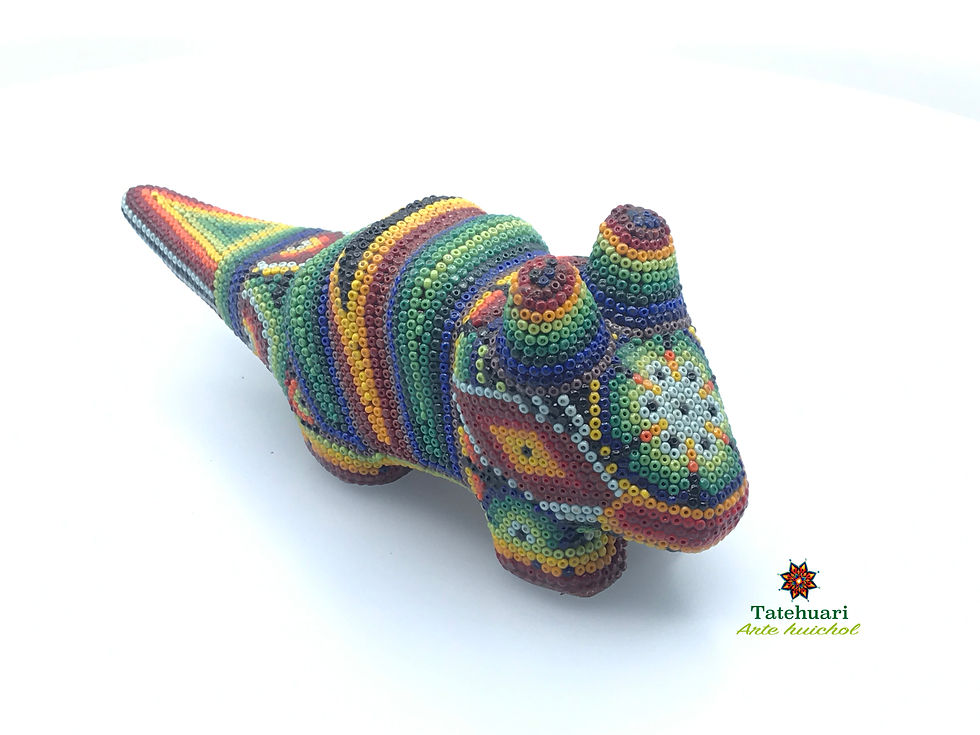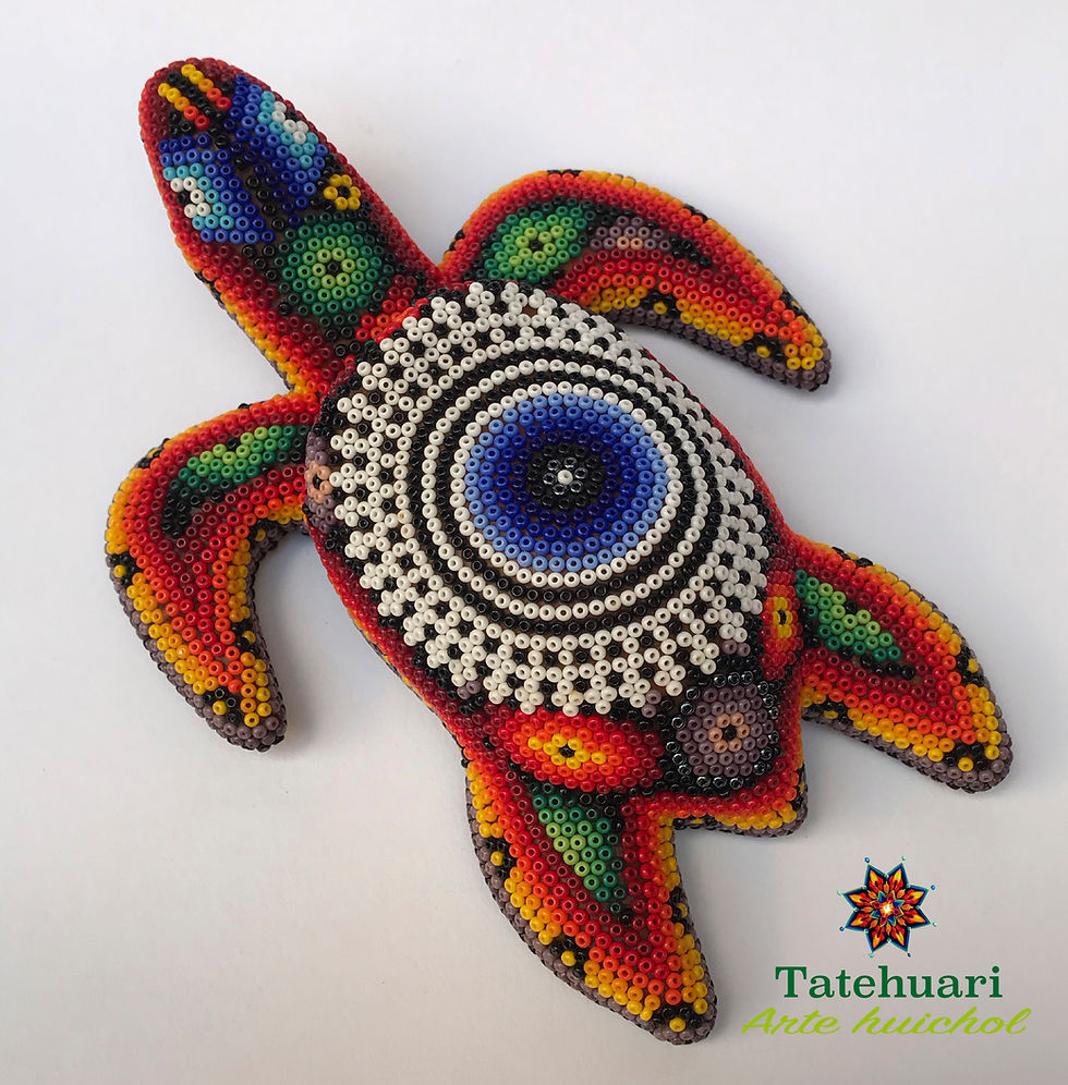 Cada una de las piezas que un artesano huichol realiza tiene una representación muy especial de sus raíces y costumbres. Los artesanos se basan en la creencia sobre sus orígenes, es decir, en cada uno de los cuatro elementos de la creación: tierra, agua, aire y fuego. Las figuras son especialmente llamativas, donde reproducen dibujos geométricos y figuras fantásticas. Escorpiones, iguanas, tortugas, venados, jaguares, lobos, cactus, tortugas, jícaras o pocillos y hasta máscaras son sólo algunas de las formas de estas divinidades plasmadas en el arte huichol.